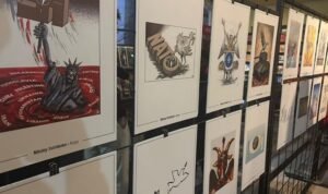 Sergide çizimleriyle de yer alan karikatürist Sait Munzur, halkın karikatürlere olan ilgisinden bahsetti. Munzur, “Bu serginin şehir şehir dolaşmasını ve halka inmesini çok önemli buluyorum. NATO’ya, emperyalizme ve İsrail’in Filistin’de yarattığı vahşete karşı halkın biriktirdiği öfkenin de göstergesi bu sergi” dedi. En genç katılımcılardan biri olan karikatürist Paylaş Kiraz ise yaptığı konuşmada, “Biz sanatçılar olarak sanatsal ve toplumsal her türlü katkıyı sunacağız” ifadelerini kullandı. Ayrıca İzmir’den iki genç sanatçının yürüyüş için marş bestelediği de duyuruldu.